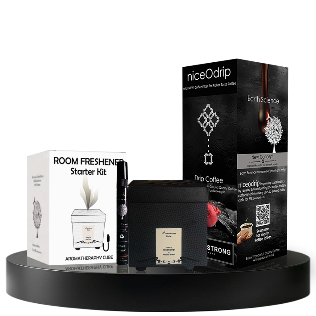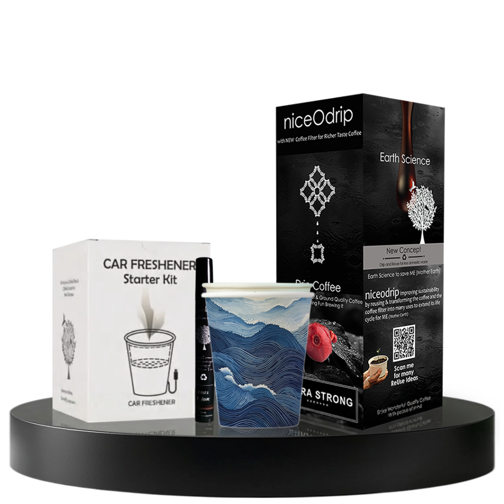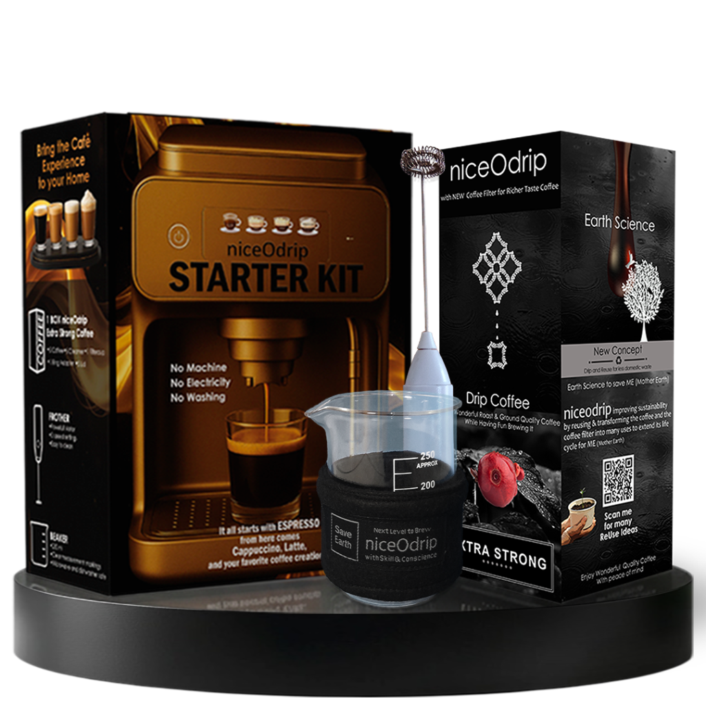 niceOdrip Extra Strong Coffee, a Frother, and a Beaker. All helps you to create your own kind of coffee beverage.